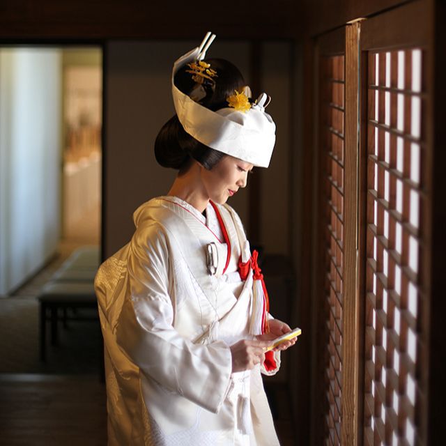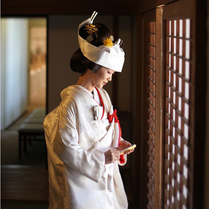 | 花嫁和装 | ¥150,000〜¥250,000(税込) ※小物一式込み(どの小物を選んでも追加料金はなし) ※オプション/日本髪かつら55,000円(税込)・綿帽子5,500円〜11,000円 |